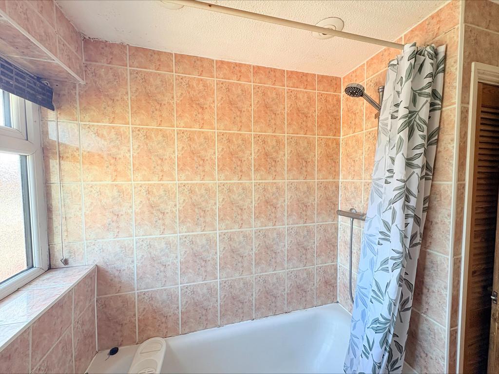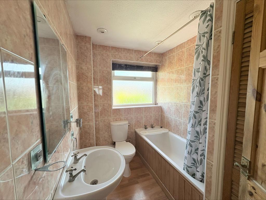 BATHROOM: 5' 11" x 8' 1" (1.81m x 2.48m) Double glazed uPVC window to the front, bath with shower over, wash hand basin, WC, tiled walls.
